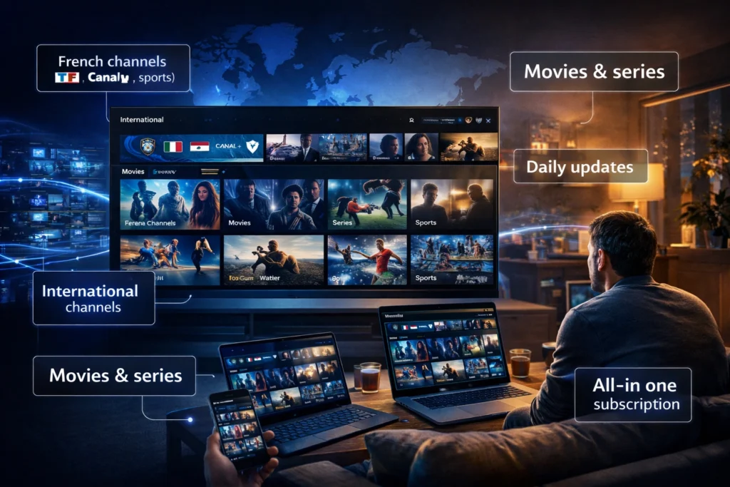 👉 Tout est inclus dans un seul abonnement IPTV.